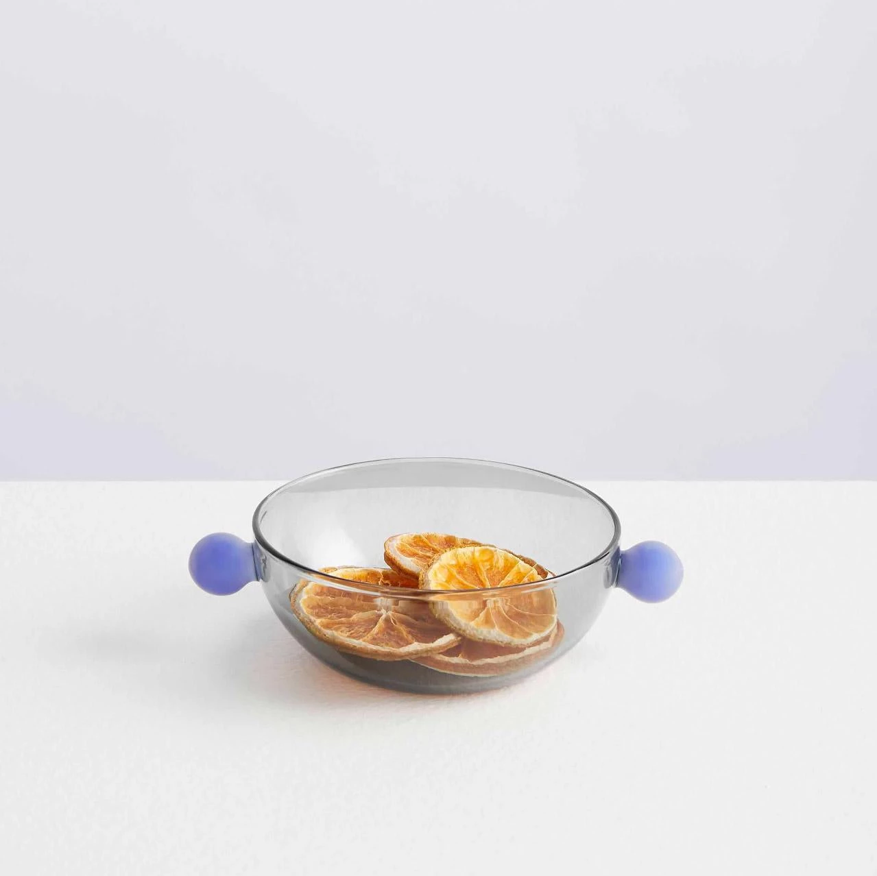 The DotDot bowl has been expertly hand crafted from a transparent grey and milky blue borosilicate glass. A dainty dish with two oversized glass ears that punctuate every tabletop with a sense of joy – no occasion necessary!