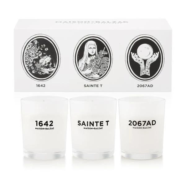 This box of three candles holds: the fragrance of a painting created in the 17th century, the perfume of the grace of Saint Thérèse of Lisieux and the phantasmic fragrance of a speculative future flower.