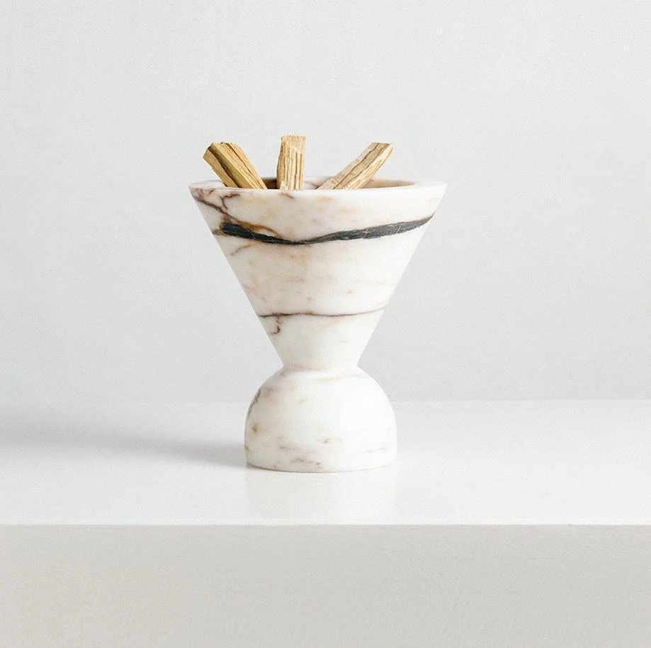 Carved from solid Picasso White Marble the Neue Void features a large funnel design which functions as an ash catcher. It is suitable for all types of incense.