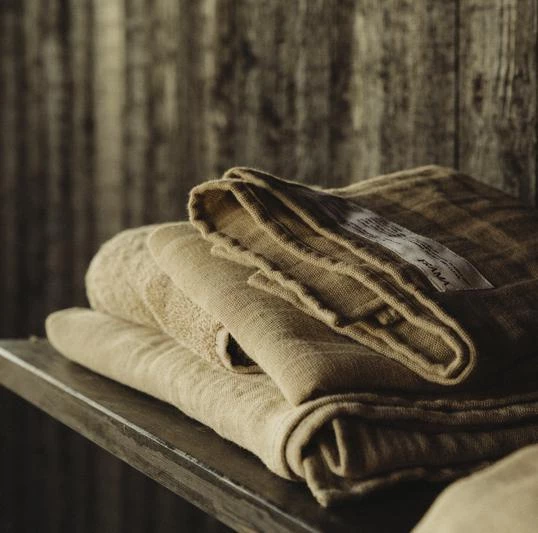 FRAMA Heavy Towels, woven with 30% hemp and 70% organic, Oeko-Tex certified terry cotton, create a warm experience with their textured yet smooth character. Soft and thick, these highly absorbent towels combine natural fibers free from harmful chemicals with double-stitched hems and closed corners. Suitable for bath and beach.
