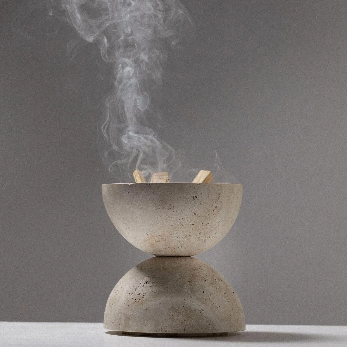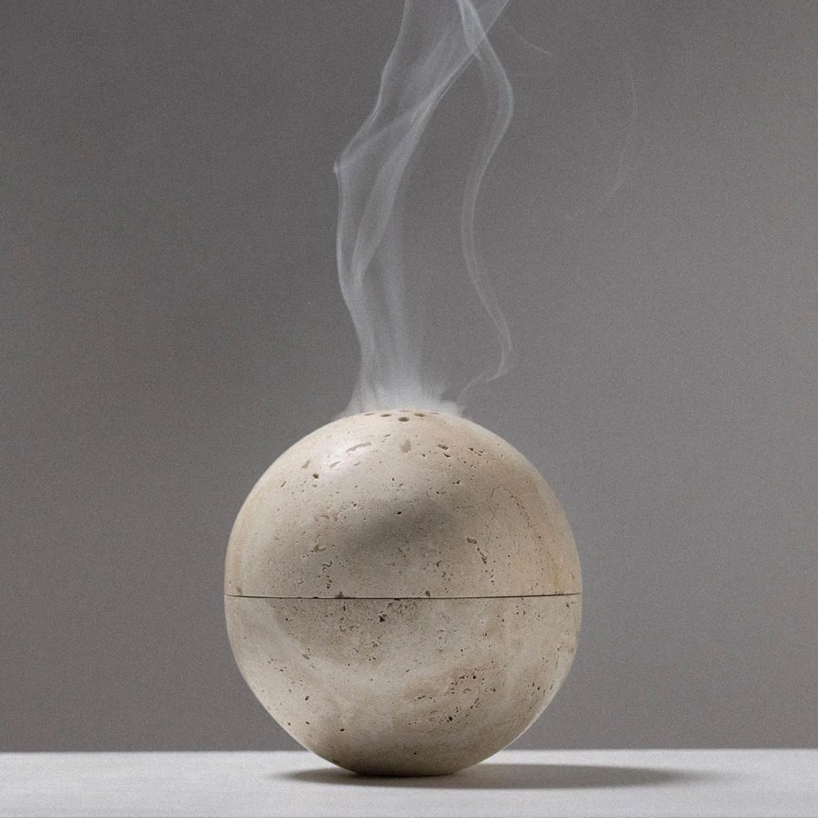 Carved from solid beige Travertine, the Sphere Incense Burner features a reversible design so the owner can customize to their desired sculptural preference. The design is stable as 2 opposed half spheres resting together, or as a complete sphere. It is suitable for all types of incense.