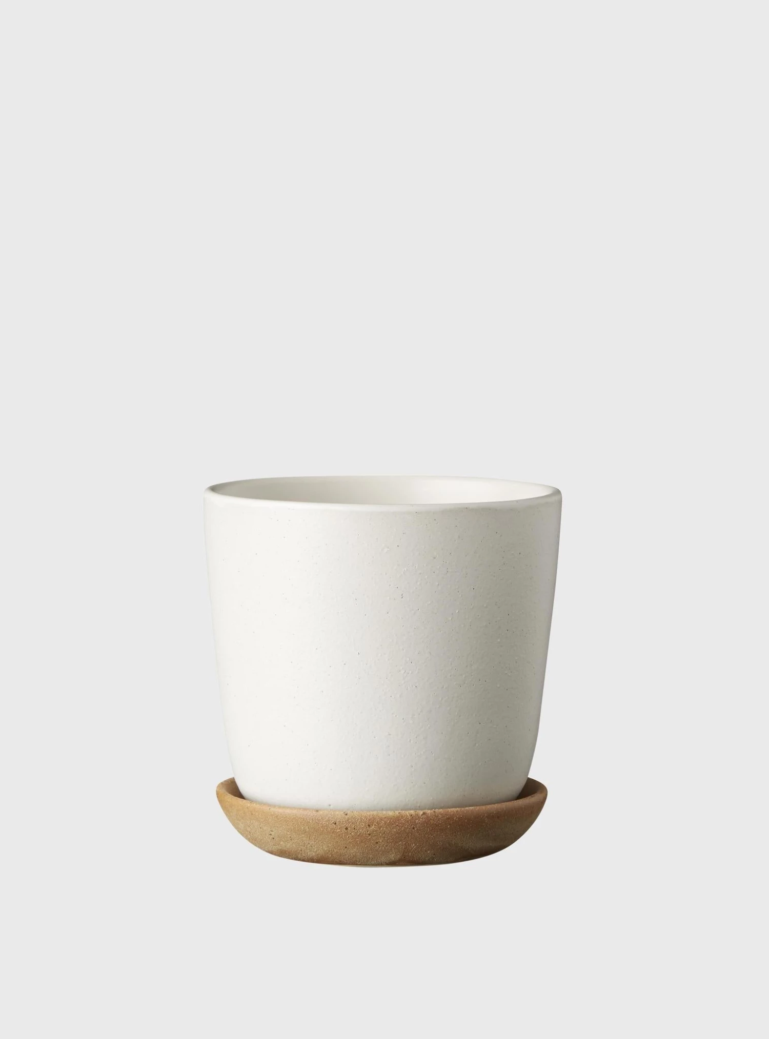 -Glazed with a matte ‘speckle’ glaze with uncoated raw saucer.