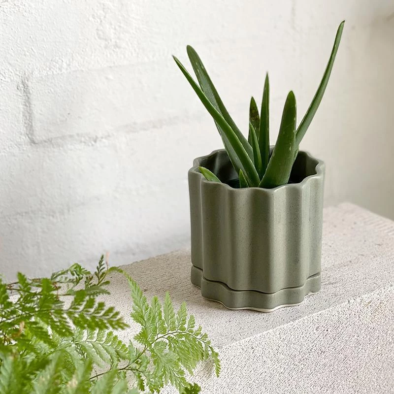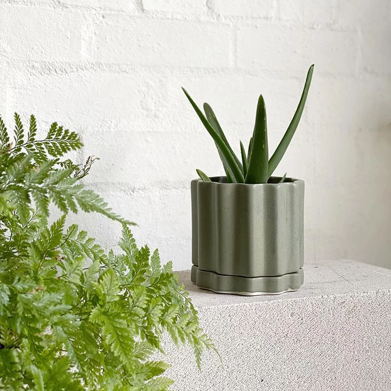 Ella Reweti is a ceramic artist living and working in Melbourne. Her distinctive range of vases and planters vary by height and colour, but all present the same surface of soft, corrugated forms, which cast an exquisite ridged silhouette.
