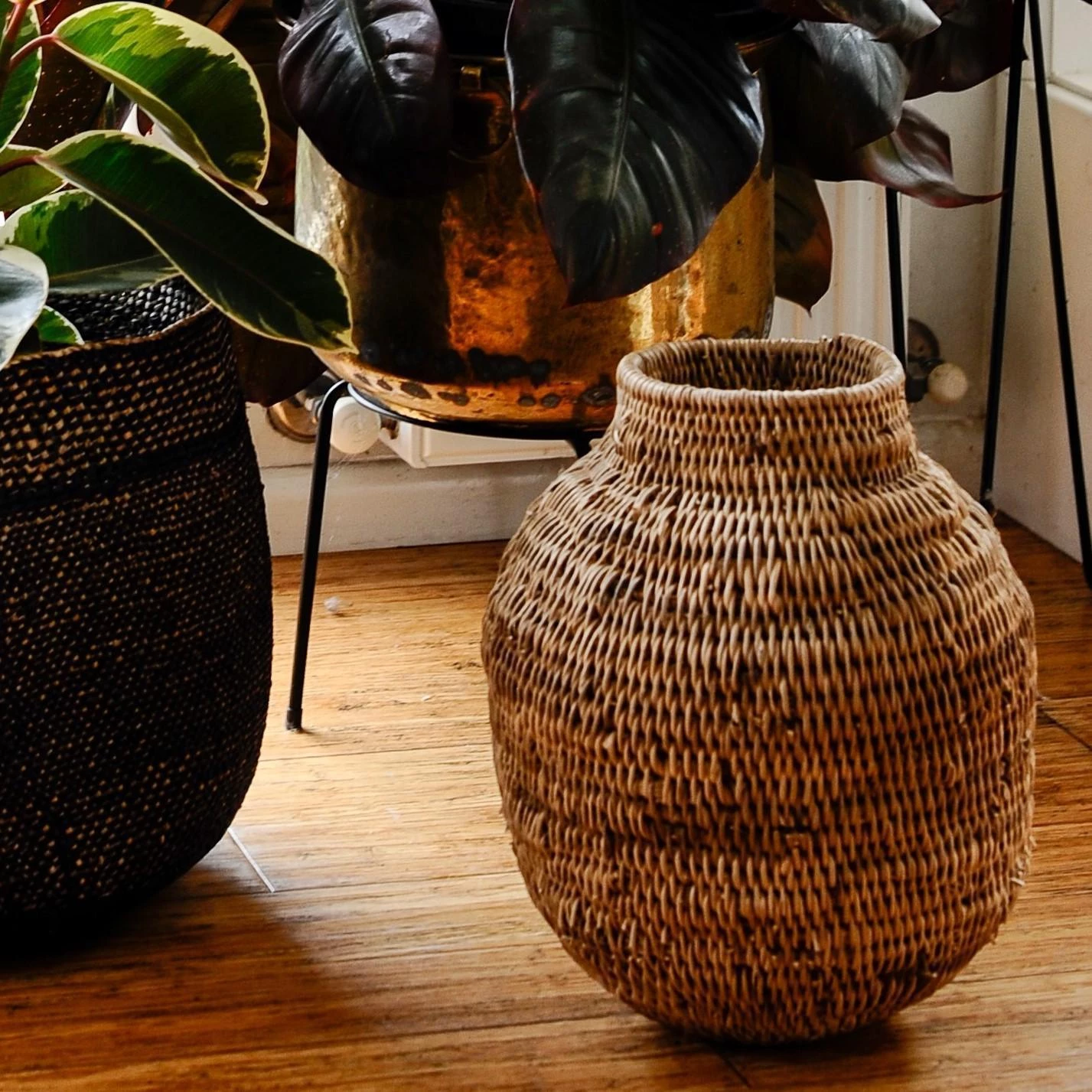 Handwoven from local grasses in the Buhera district of Zimbabwe. Using traditional weaving skills these organic pot-shaped baskets strong and look great in any room. Each one slightly unique.