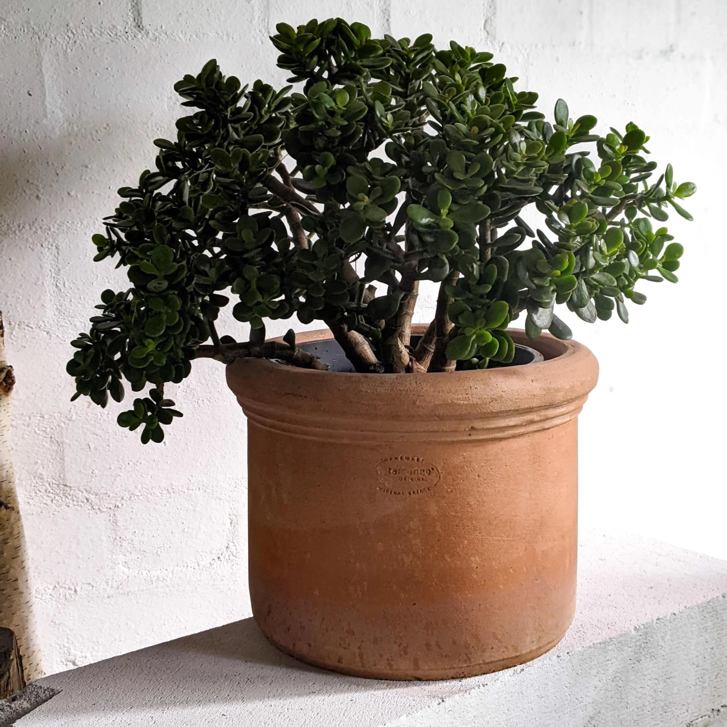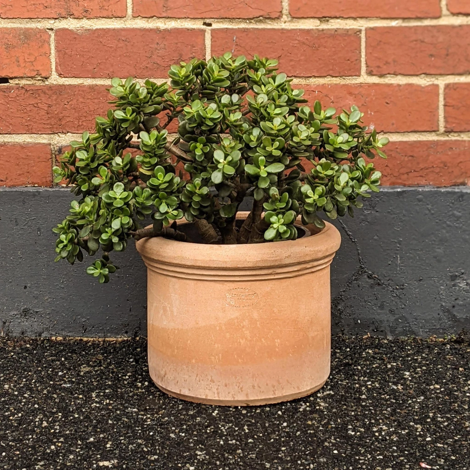Dwarf cultivar of the popular Jade succulent which over time, will produce thick tree-like branches with fleshy, glossy and smooth, leaves. Leaves are jade green in colour and in well lit areas have been slightly tinged with red. Very tough, often pruned as bonsai, used as an indoor plant, in courtyards and pots. Crassula will flower from time to time if conditions are favourable.