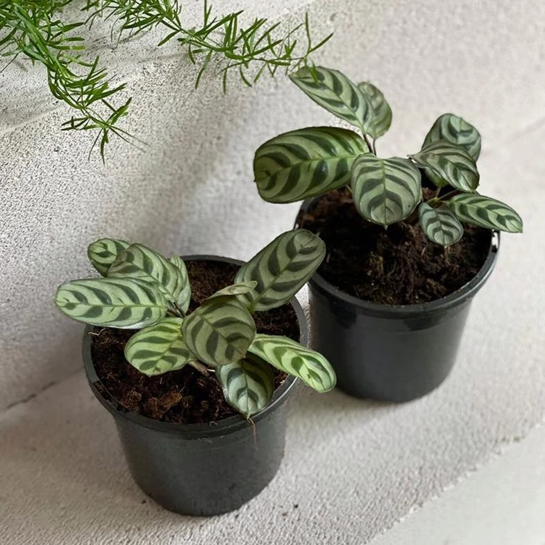 Ctenanthe burle-marxii is a small houseplant that makes for the perfect tabletop of shelf plant. With it’s unique foliage markings – its bright green leaves are covered with striped bands as well as deep purple on the undersides and stems.