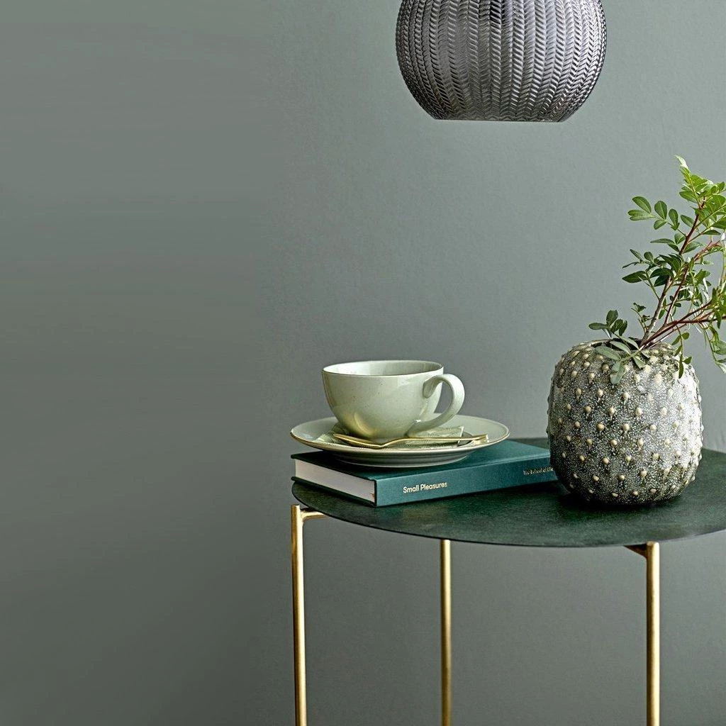 A beautiful deep olive green stoneware vase with a rounded, textured exterior and small opening. A simple textural vase for your florals.