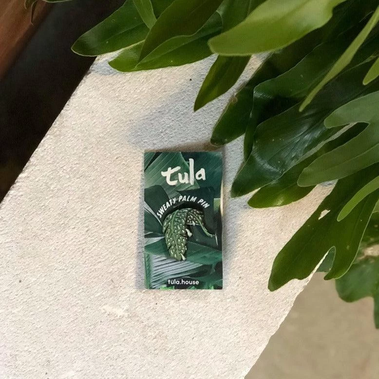 The Sweaty Palm has become our honorary Tula logo. A Bird of Paradise leaf drenched in tropical sweat. Don’t leave home without, it will miss you.