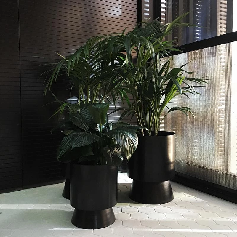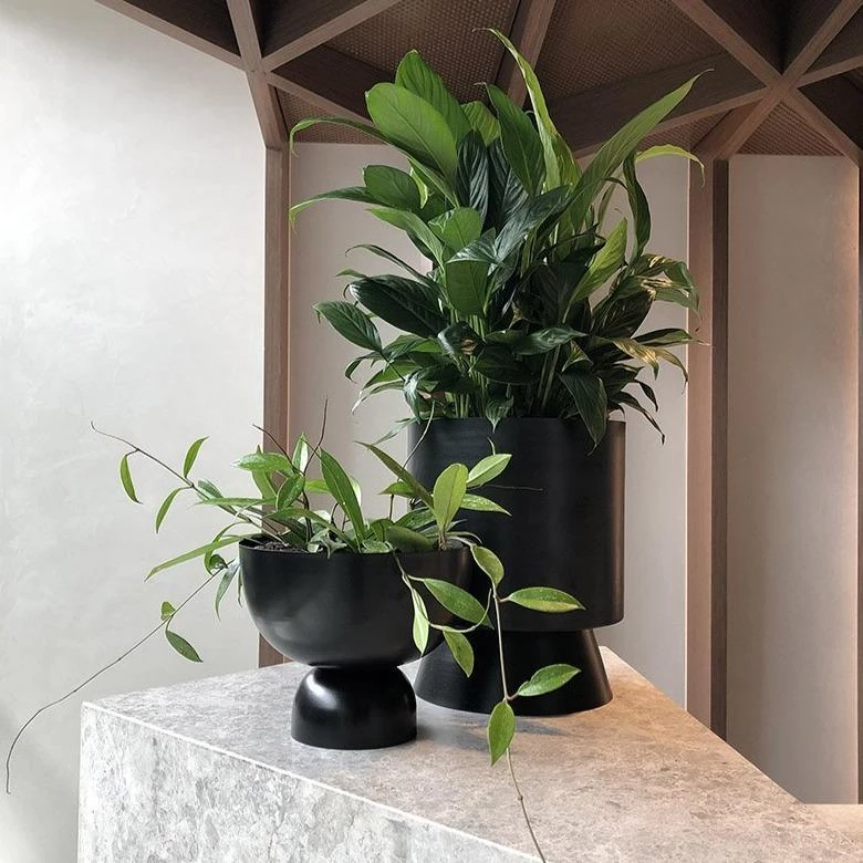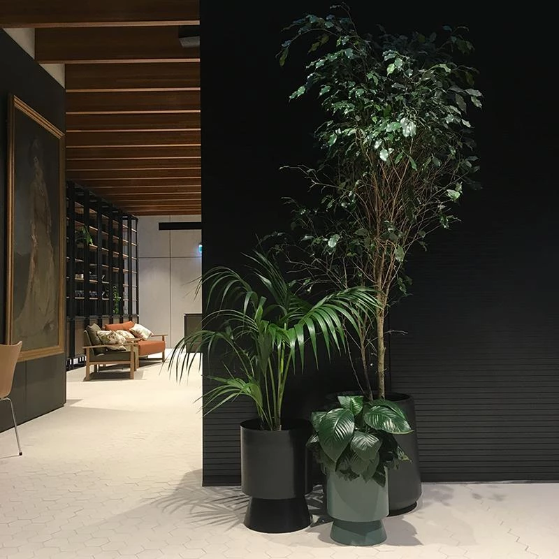 The architectural Palm Springs planters, crafted in powder-coated spun metal explore the relationship between the natural and built environment through colour and form.
