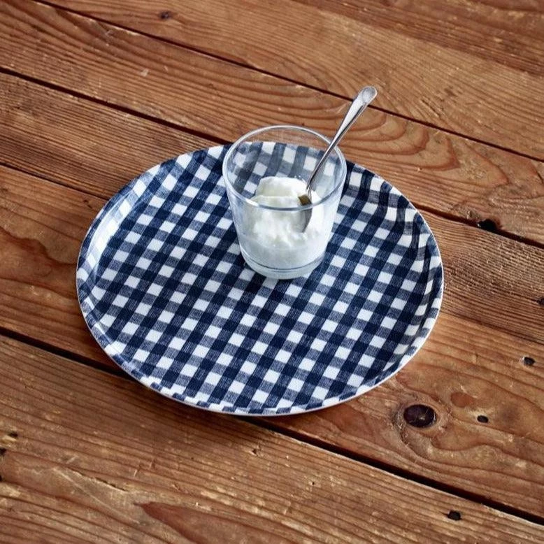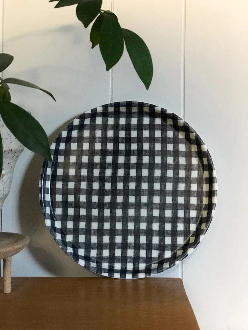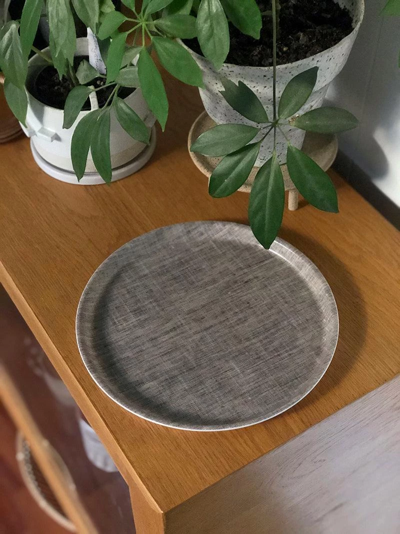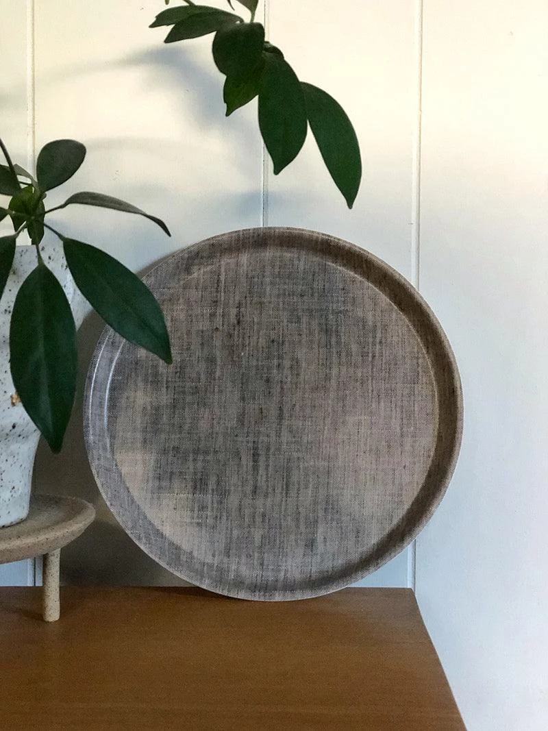 Useful, light-weight serving trays made from linen that has been covered in a poly resin. Not suitable for extreme heat.