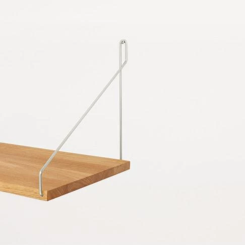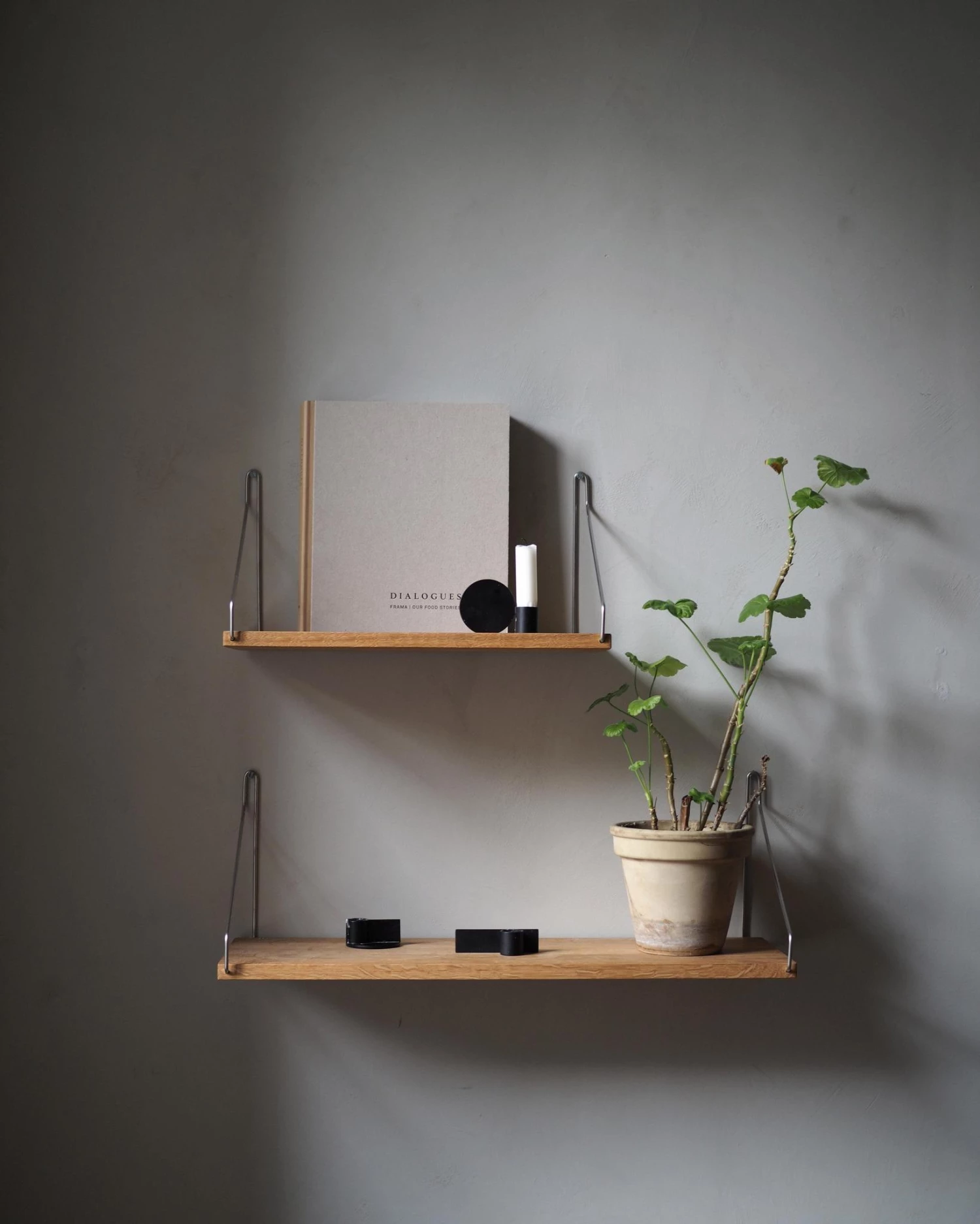Shelf is a reinterpretation of the recognised Scandinavian shelf design from the fifties. With the advantage of the simplicity and strength in the design. The shelf can be mounted gracefully by the light brackets available in Brass, Stainless Steel or Black.
