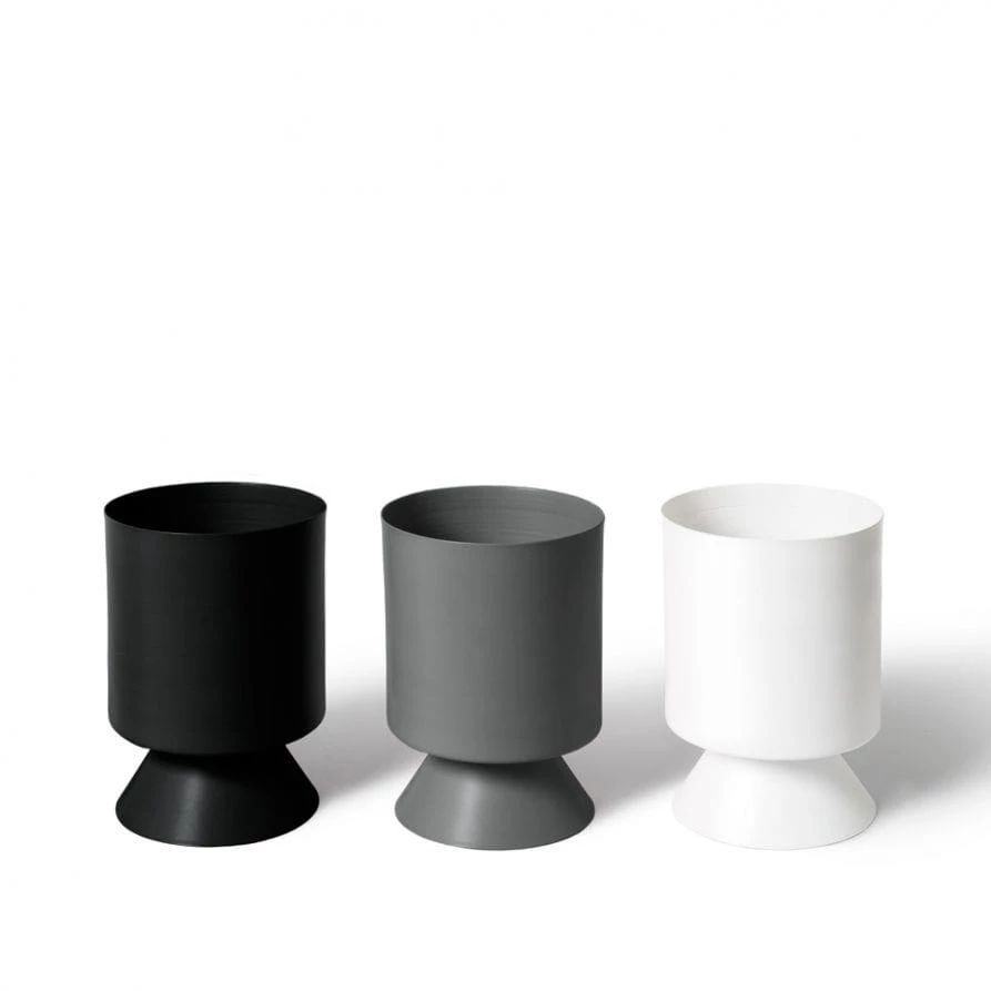 The architectural Palm Springs planters, crafted in powder-coated spun metal explore the relationship between the natural and built environment through colour and form.