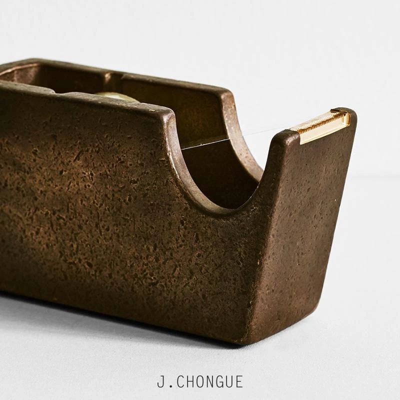 The Bronze Tape Dispenser is a hefty piece of stationery. It is cast in solid gunmetal bronze with machined teeth. Fits standard scotch tape rolls. It is rumble finished for a smooth surface texture and has also been heat treated.