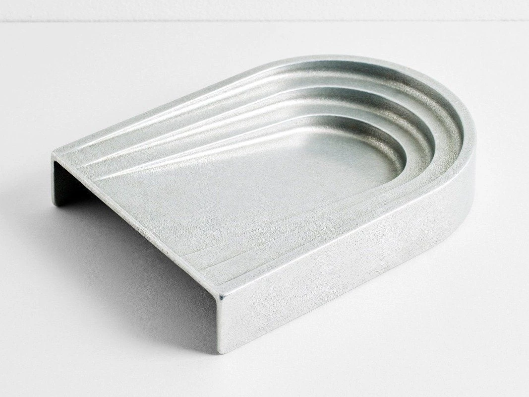 Thoronet dish, shares its’ name and arched lines with the Abby in the south of France. It is made, polished and finished in Sydney, Australia in solid Aluminium.