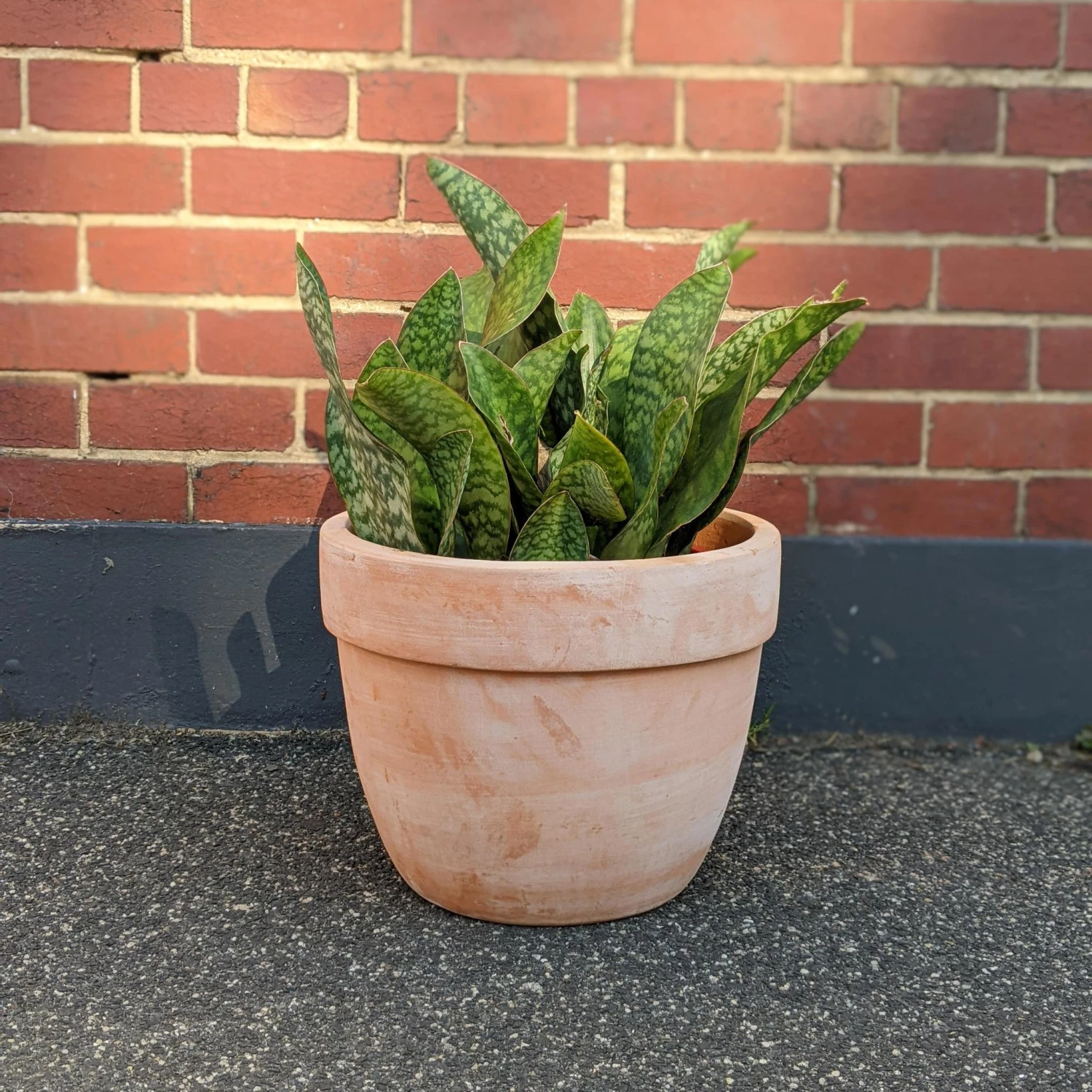 Snake plants can survive long periods without water. Keep moist over the warmer months. Reduce watering in the cooler months and allow the plant to dry longer between watering. Can adapt to drier conditions.